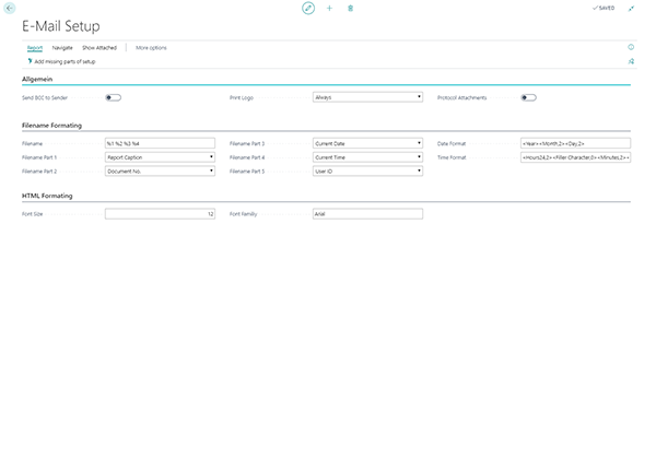 The E-Mail setup defines general E-Mail options for sending Aproda Documents Automation reports via E-Mail.